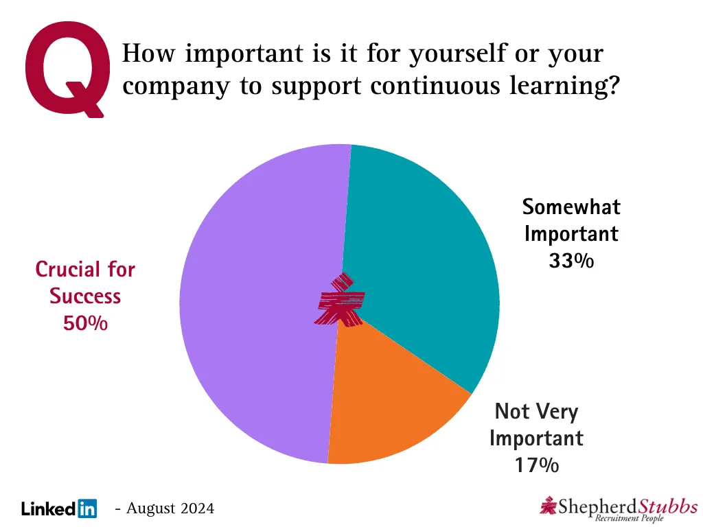 In our continuous effort to delve into the dynamics of professional development, this August, we explored the importance of continuous learning within the workplace through a LinkedIn poll. The question posed to our network was, “How important is it for yourself or your company to support continuous learning?”